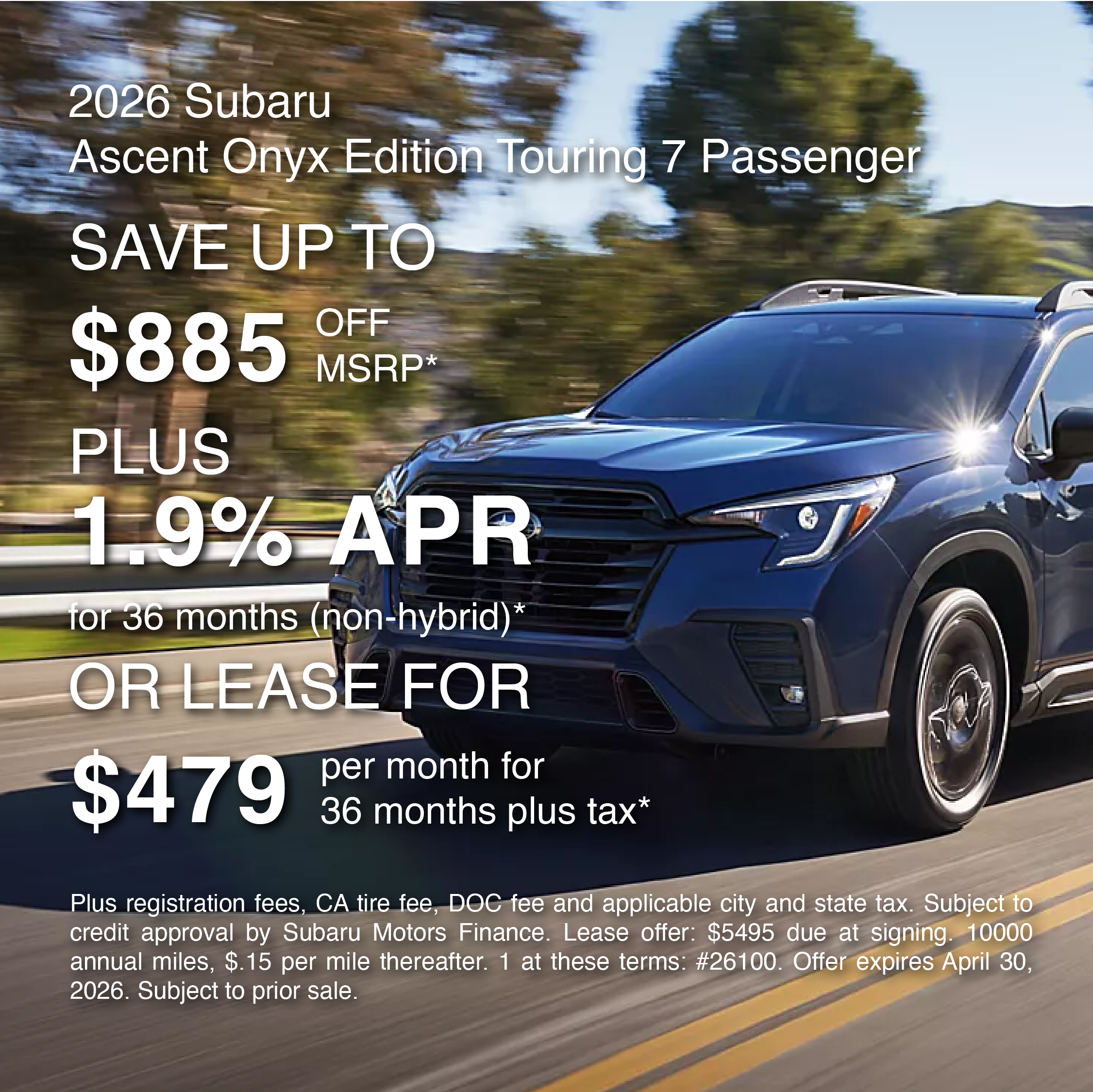 SAVE UP TO $885OFF MSRP* PLUS 1.9% APR for 36 months (non-hybrid)* OR LEASE FOR $479 per month for 36 months plus tax*